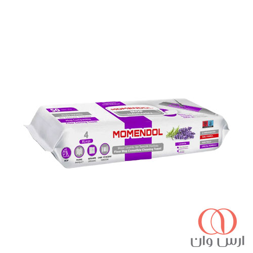 ارس وان - بهداشت خانه - پاک کننده و ضد عفونی کننده ها - کف شو ها - دستمال مرطوب تی مومندول Momendol مدل Lavanta حاوی رایحه لوندر بسته 50 عددی
