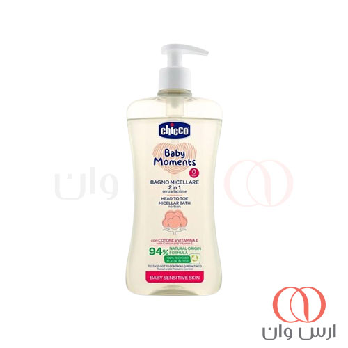 شامپو سر و بدن کودک چیکو مدل میسلار ۲ در ۱ حاوی روغن پنبه و ویتامین E حجم 500 میل