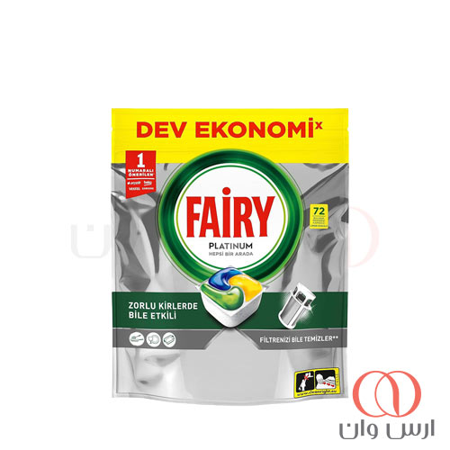 ارس وان - بهداشت خانه - محصولات ظرفشویی - قرص ماشین ظرفشویی فیری platinum تعداد 72 عددی