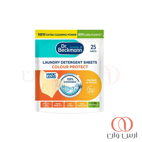 ورقههای شوینده لباس دکتر بکمن مخصوص لباسهای رنگی رایحه پرتقال و هلو بسته 25 عددی
